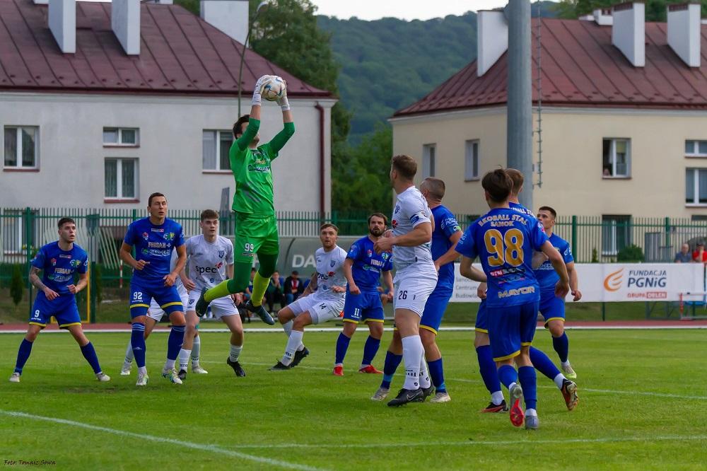 Po chwili sanoczanie mogli podwyższyć prowadzenie. Z rzutu wolnego przymierzył Jakub Kloc i przyjezdnych uratowała poprzeczka. Co się odwlecze to nie uciecze. W 26. minucie podanie z prawej strony boiska na gola zamienił Dawid Kogut,"na raty " pokonując golkipera rywali.