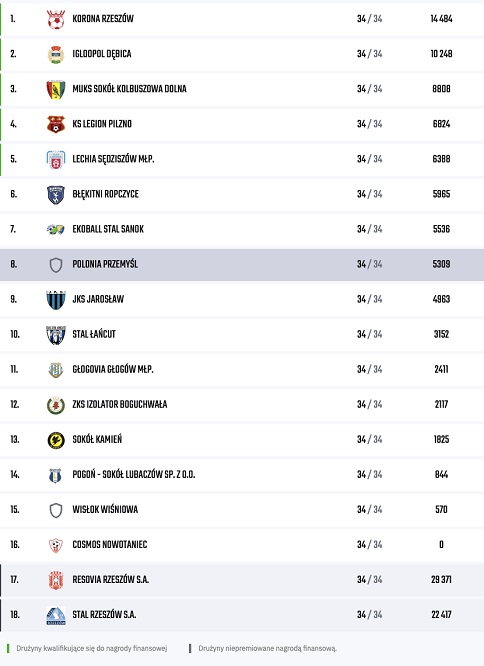 Resoviackie rezerwy ze średnią wieku nie przekraczającą 18 lat były najmłodszą drużyną w 4 lidze podkarpackiej na przestrzeni całego sezonu.