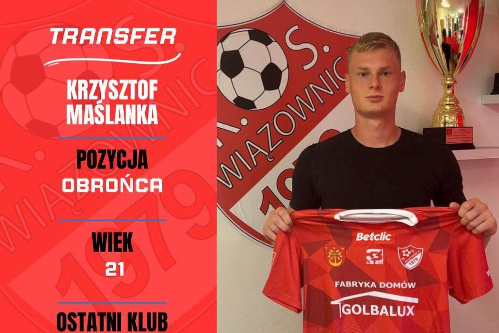 Krzysztof Maślanka zasilił drużynę Valeriya Sokolenko. 21-latek występuje na pozycji obrońcy. Nowy zawodnik KS Wiązownica ma na swoim koncie występy w Polonii Środa Wielkopolska, Warcie Gorzów Wielkopolski, GKS-ie Tychy czy ostatnio Stali Brzeg.