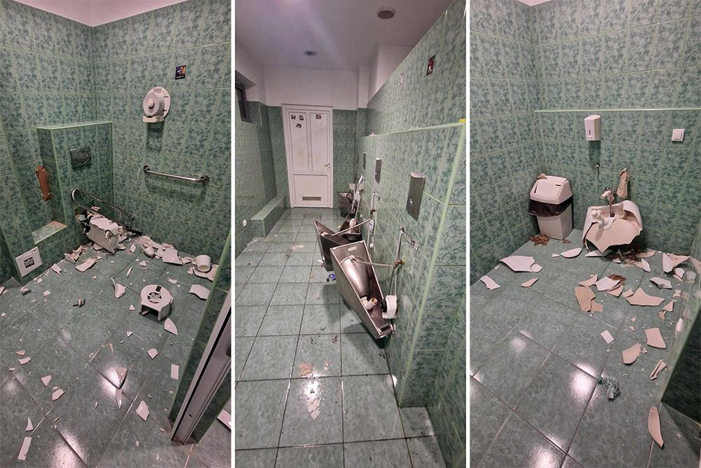 Zdewastoane toalety dla kibiców gości po meczu Siarka Tarnogrzeg - Sandecja Nowy Sącz (fot. facebook.com/SiarkaTarnobrzeg1957)