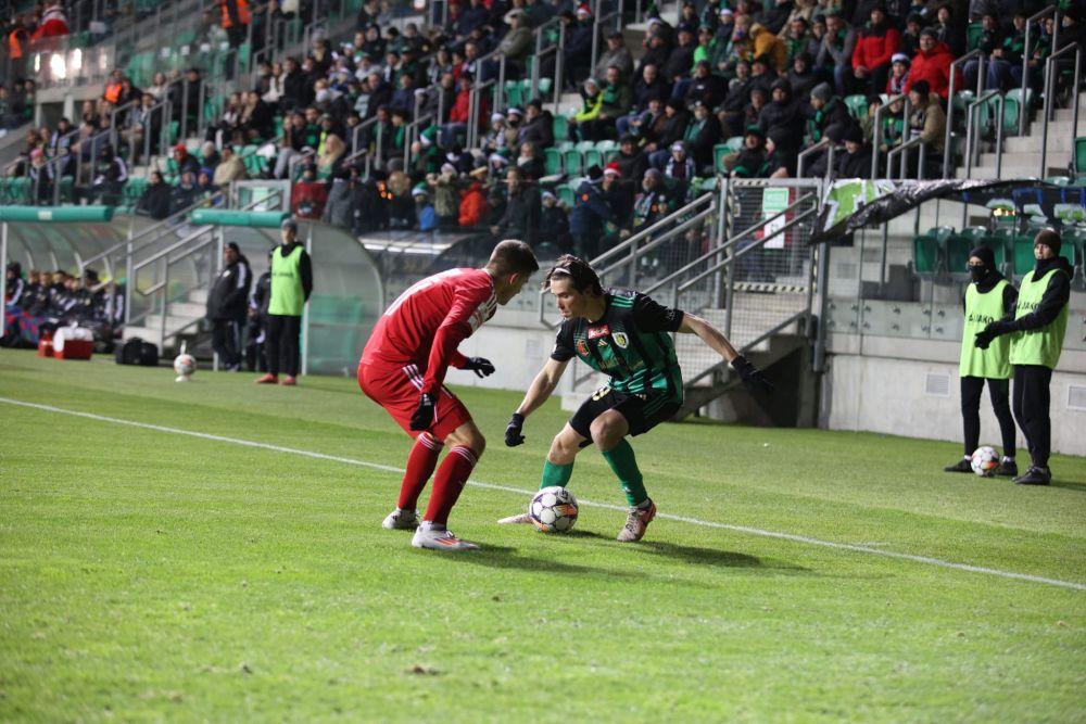 W 58. minucie Miedź Legnica wyszła na prowadzenie. Kamil Antonik ruszył prawą stroną, wyłożył futbolówkę do Juliusza Letniowskiego, a ten uderzeniem w kierunku dalszego słupka pokonał Mikołaja Smyłka.