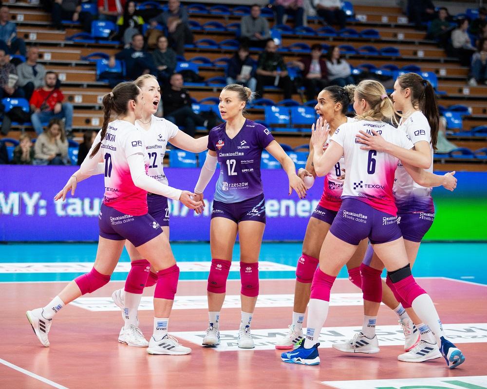 Po wygranej w pierwszym secie 25-21, rzeszowianki przegrały drugą partię 22-25.