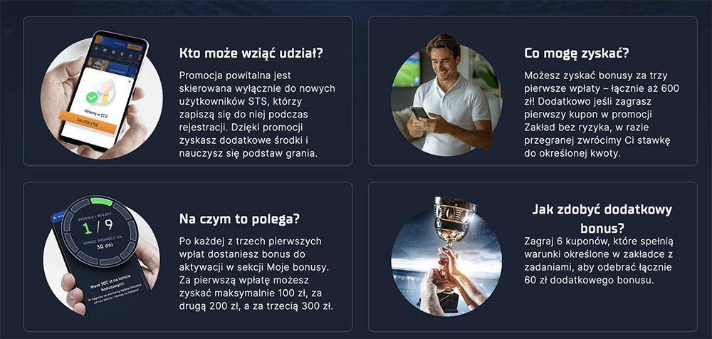 STS przygotował dla nowych użytkowników kilka atrakcyjnych bonusów: