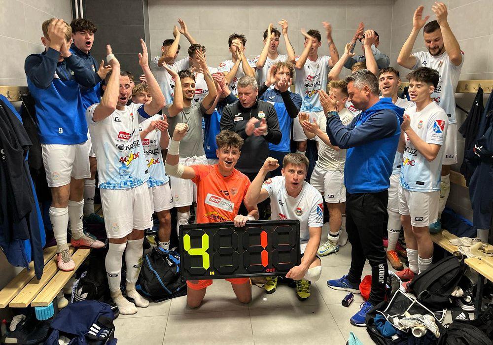 Gospodarze wyrównali w drugiej połowie po kontrataku zakończonym golem Marcina Stefanika. Był to przełomowy moment tego starcia, po którym miejscowi przejęli inicjatywę. Filip Leśniak dwukrotnie wpisał się na listę strzelców, a jedno trafienie dołożył Artur Biały. Mecz zakończył się efektownym zwycięstwem "Morsów", którzy pokonali dotychczasowego lidera tabeli.