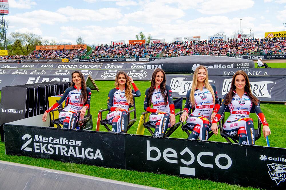 - Wolf Girls, czyli podprowadzające Cellfast Wilków Krosno. To właśnie one pełnią rolę "asystentek" podczas prezentacji zawodników i przed startem biegu. Podprowadzające są częścią tradycji żużlowej w Polsce. Choć ich rola jest głównie symboliczna i reprezentacyjna, stanowią ważny element całej otoczki meczu żużlowego