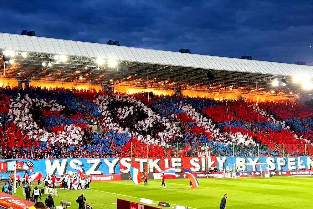 Wisła Kraków przegrała z Miedzią Legnica 0-1. Zobaczcie jak wyglądała oprawa i doping kibiców na meczu barażowym o awans do Ekstraklasy.