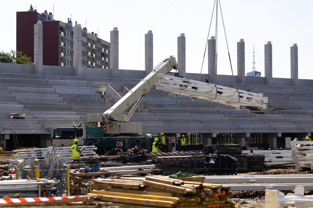 - Stadion z tygodnia na tydzień rośnie w oczach – wykonano już kanalizację deszczową, instalacje podposadzkowe i konstrukcje podziemne, a także zamontowano żelbetową konstrukcję trybun. Trwa budowa stropów, konstrukcji nośnej budynku klubowego oraz instalacji elektrycznych i teletechnicznych. Wszystkie prace przebiegają zgodnie z harmonogramem, a otwarcie obiektu planowane jest na październik 2026 roku - informuje Prezydent Rzeszowa, Konrad Fijołek.