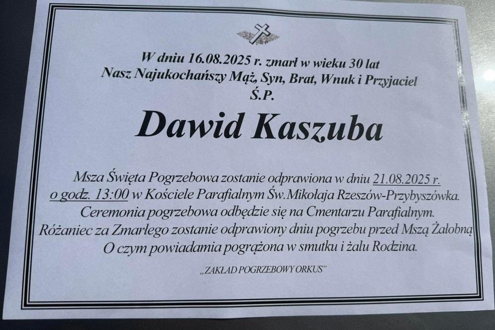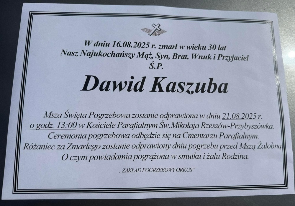Różaniec za śp. Dawida Kaszubę zostanie odmówiony w dniu pogrzebu, przed Mszą żałobną.