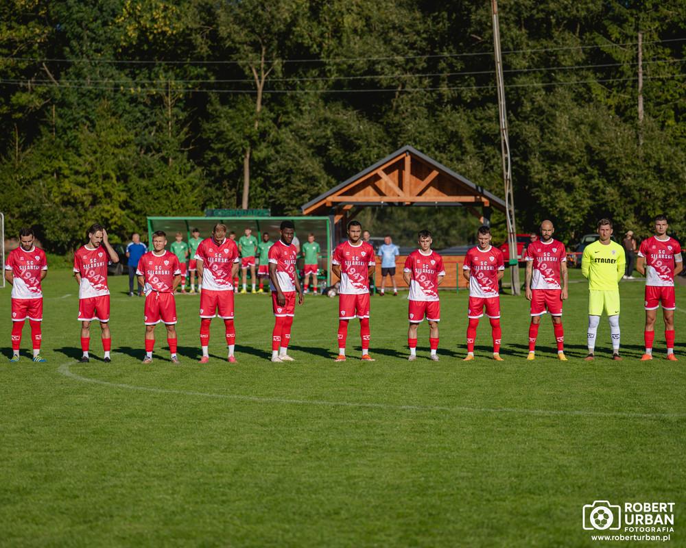 - Cosmos Nowotaniec (czerwono-białe stroje) wygrał 2-1 ze Stalą Gorzyce w meczu 9. kolejki 4 ligi podkarpackiej. Goście wyszli na prowadzenie po golu Emilio Gomesa, a miejscowi odpowiedzieli trafieniem Ivana Hury. O wygranej Cosmosu Nowotaniec przesądził samobójczy gol Przemysława Winiarskiego (fot. Robert Urban / facebook.com/roberturbanfotografia)