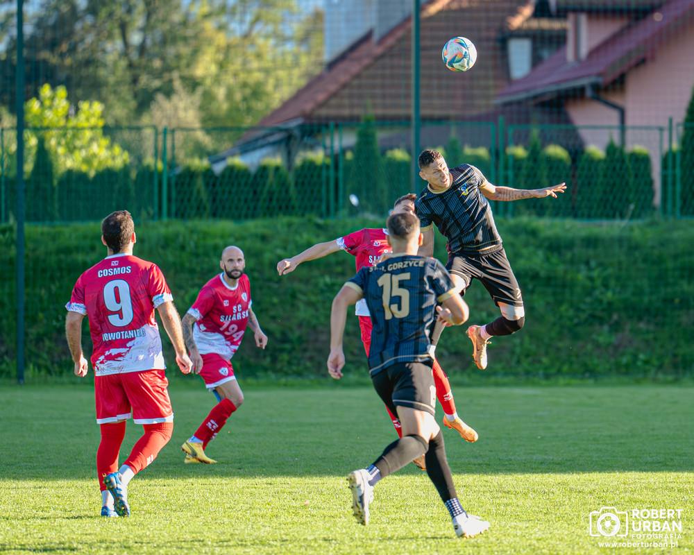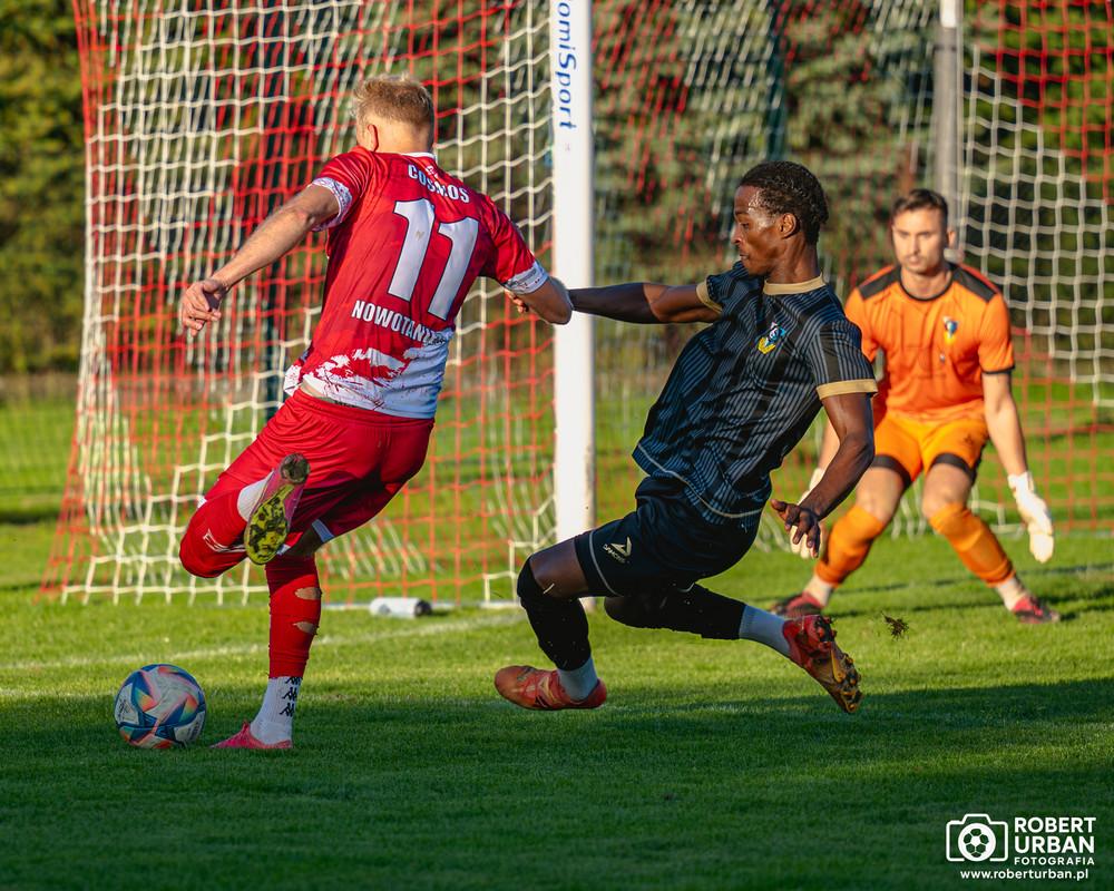 - Cosmos Nowotaniec (czerwono-białe stroje) wygrał 2-1 ze Stalą Gorzyce w meczu 9. kolejki 4 ligi podkarpackiej. Goście wyszli na prowadzenie po golu Emilio Gomesa, a miejscowi odpowiedzieli trafieniem Ivana Hury. O wygranej Cosmosu Nowotaniec przesądził samobójczy gol Przemysława Winiarskiego (fot. Robert Urban / facebook.com/roberturbanfotografia)