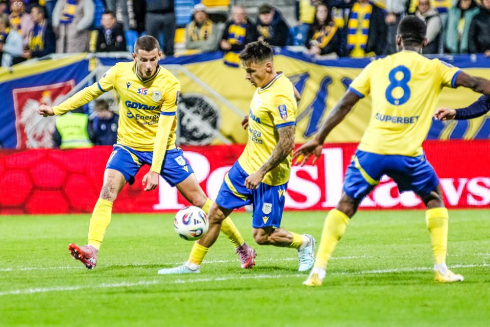 - Motor Lubin (granatowe stroje) przegrał na wyjeździe z Arką Gdynia 0-1 w meczu I rundy Pucharu Polski. Gospodarze do wygranej potrzebowali dogrywki. Gola na wagę awansu zdobył Kamil Jakubczyk w 103. minucie meczu.
