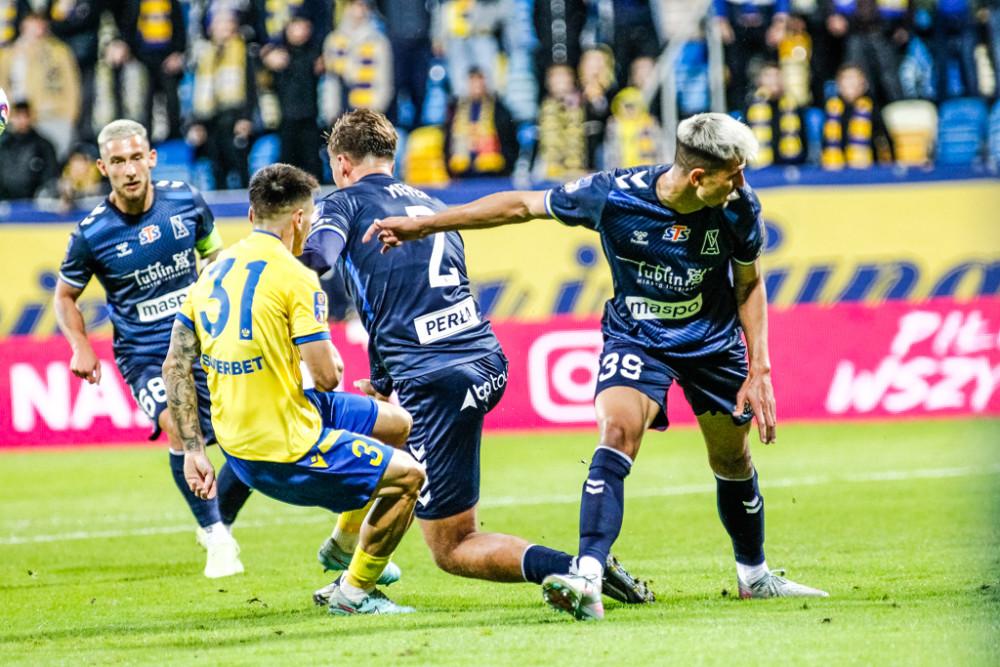 - Motor Lubin (granatowe stroje) przegrał na wyjeździe z Arką Gdynia 0-1 w meczu I rundy Pucharu Polski. Gospodarze do wygranej potrzebowali dogrywki. Gola na wagę awansu zdobył Kamil Jakubczyk w 103. minucie meczu.