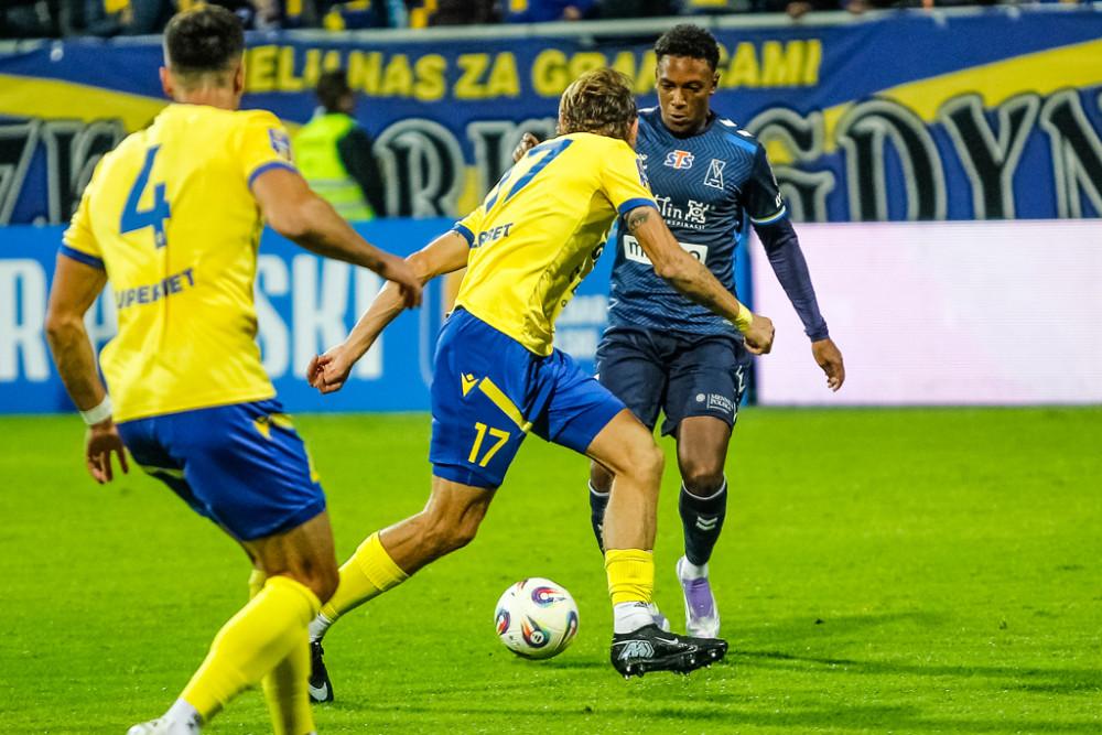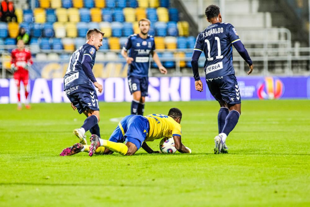 - Motor Lubin (granatowe stroje) przegrał na wyjeździe z Arką Gdynia 0-1 w meczu I rundy Pucharu Polski. Gospodarze do wygranej potrzebowali dogrywki. Gola na wagę awansu zdobył Kamil Jakubczyk w 103. minucie meczu.