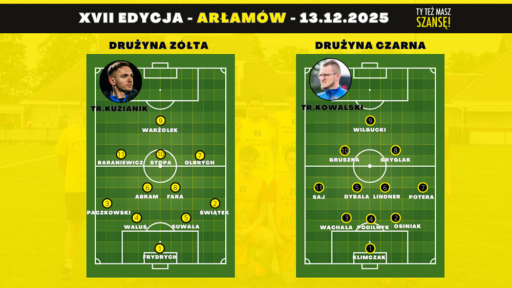 Bramki dla drużyny Żółtych zdobyli Karol Stopa oraz Marcin Olbrych. Po stronie Czarnych na listę strzelców wpisał się Maciej Gryglak.