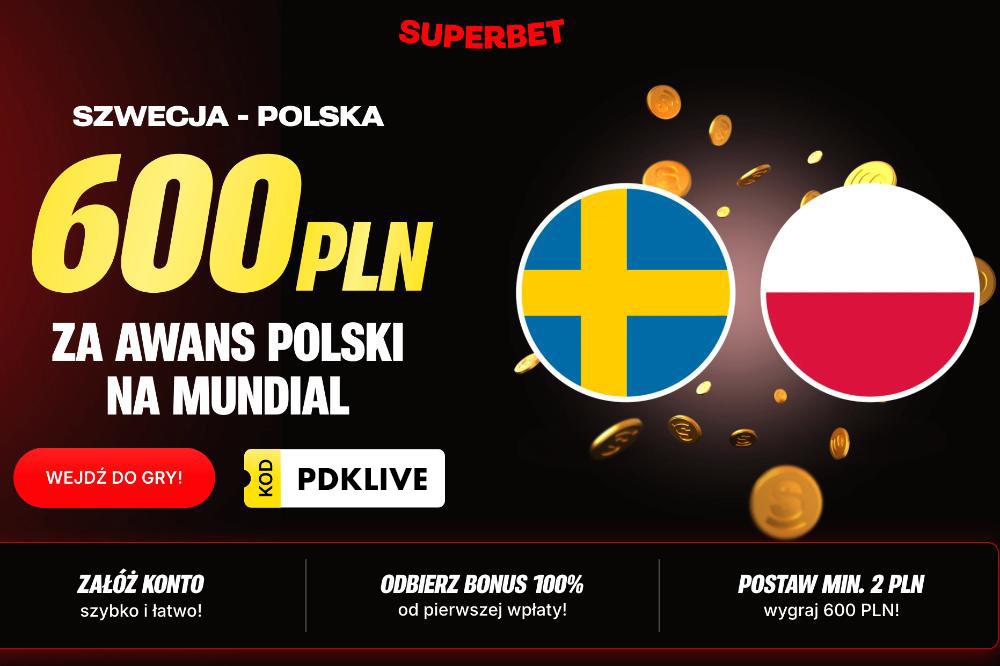Legalny polski bukmacher Superbet uruchomił ofertę dla nowych graczy, w której można zgarnąć aż 600 PLN bonusu, jeśli Polska wywalczy awans na Mistrzostwa Świata 2026.