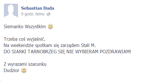 Po tym jak oficjalny portal Stali Mielec zamieścił komunikat, w którym informował o fiasku rozmów z Sebastianem Dudą i zakończeniu dalszej współpracy z zawodnikiem, kibice "Biało-niebieskich" nie kryli rozczarowania.
