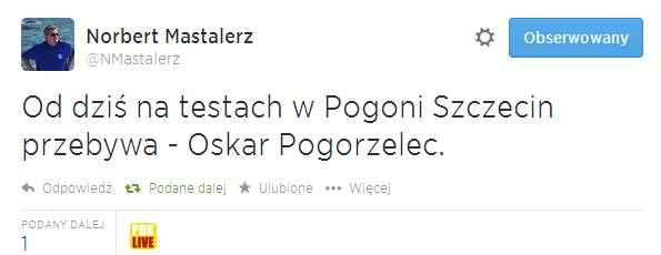 19-letni Oskar Pogorzelec, bramkarz drugoligowej Siarki Tarnobrzeg, przebywa na testach w Pogoni Szczecin.