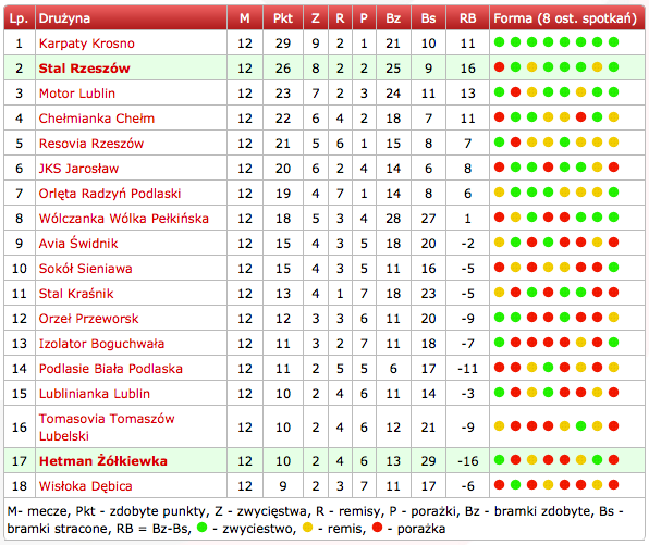 Tabela 3 ligi lubelsko-podkarpackiej:
