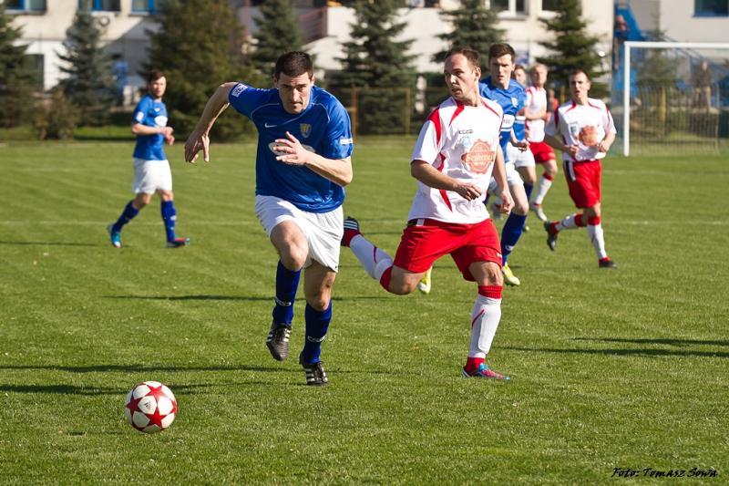 Orzeł Przeworsk (biało-czerwone stroje) wygrał z Tomasovią 1-0 (fot. Tomasz Sowa / archiwum)