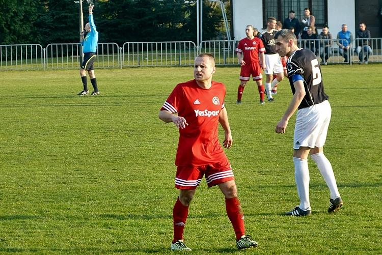 4/26 - Piast Tuczempy (czarno-białe stroje) zatrzymał piłkarzy Rzemieślnika Pilzno, którzy stracili pozycję lidera 4 ligi podkarpackiej (fot. Mieczysław Turczyn)