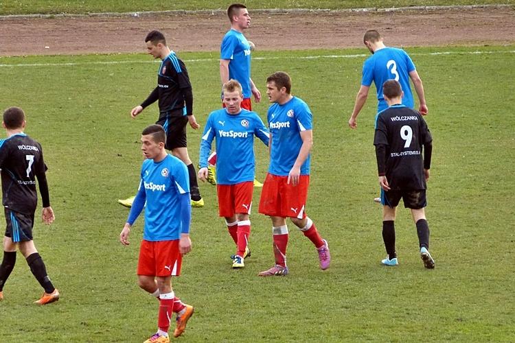 - Polonia Przemyśl (niebiesko-czerwone stroje) wygrała 2-1 z trzecioligową Wólczanką Wólka Pełkińska i awansowała do finału okręgowego Pucharu Polski (fot. Mieczysław Turczyn)