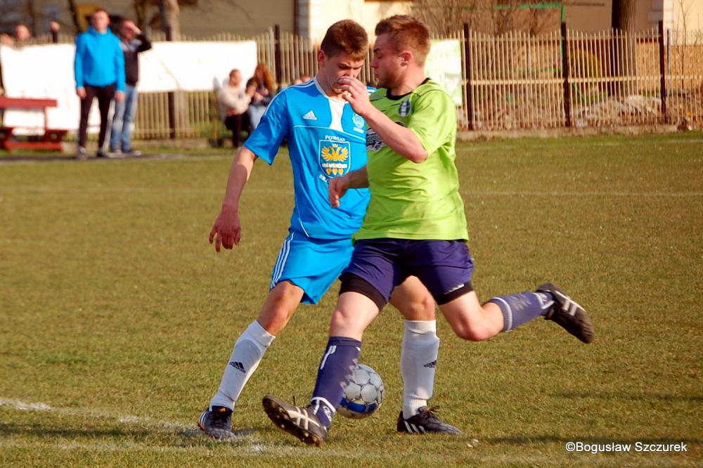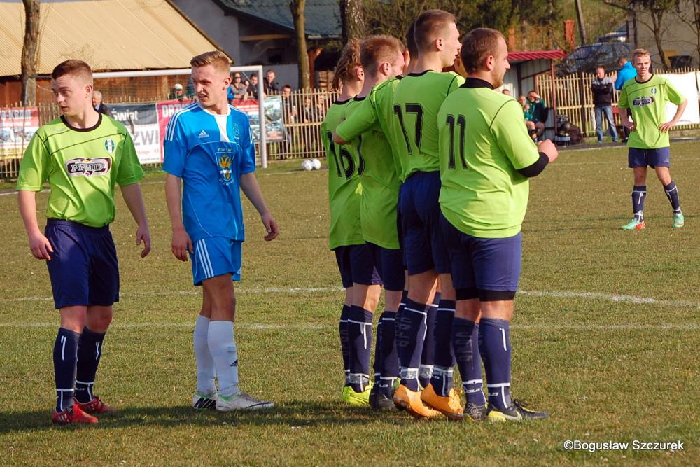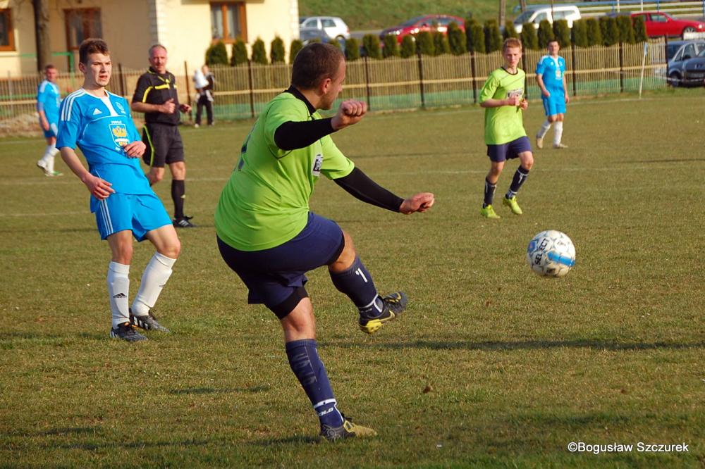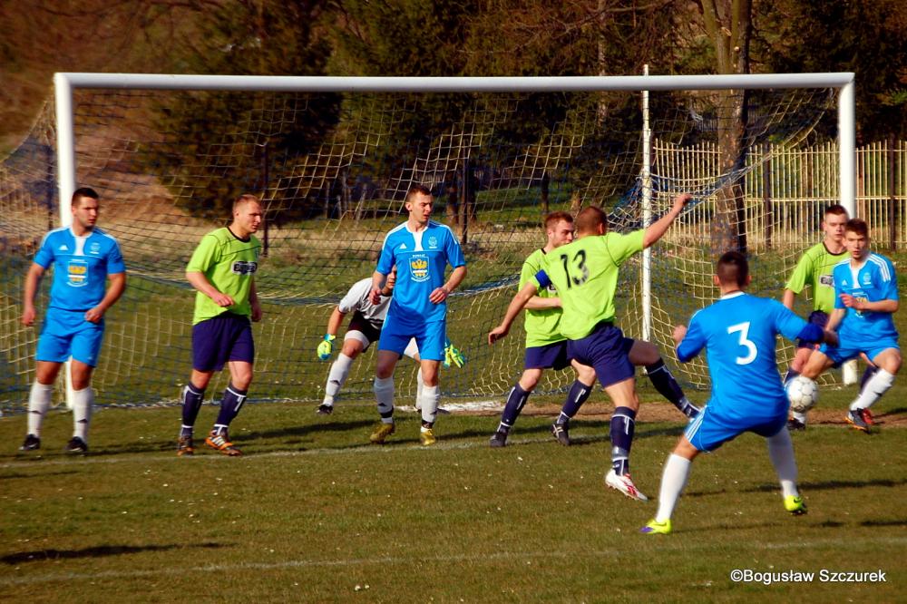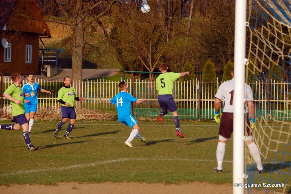 - LKS Haczów (niebieskie stroje) zremisował z Przełęczą Dukla 2-2 w meczu klasy O Krosno (fot. Bogusław Szczurek)