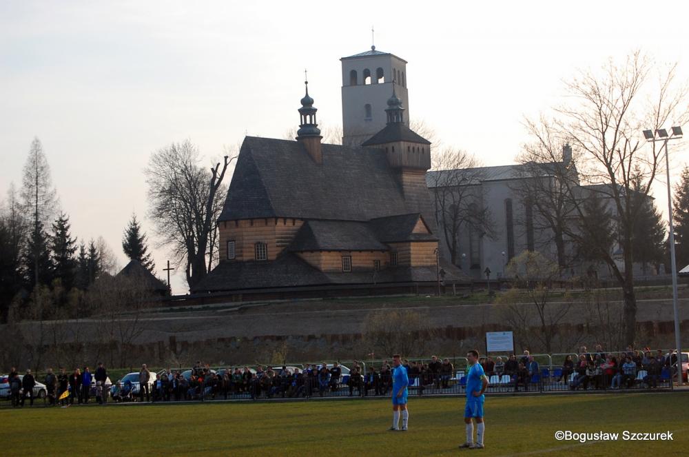 - LKS Haczów (niebieskie stroje) zremisował z Przełęczą Dukla 2-2 w meczu klasy O Krosno (fot. Bogusław Szczurek)
