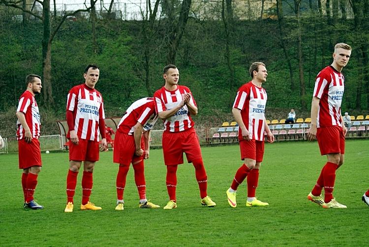 - Orzeł Przeworsk (biało-czerwone stroje) przegrał u siebie z Izolatorem Boguchwała 1-3 w meczu 25. kolejki 3 ligi lubelsko-podkarpackiej (fot. Mieczysław Turczyn)