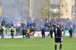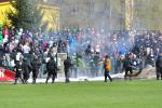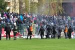 Zdjęcia z meczu Siarka Tarnobrzeg - Zagłębie Sosnowiec (1-2) w ramach 26. kolejki 2 ligi. Nerwowo było szczególnie w sektorze gości, którzy wyłamali ogrodzenie i spalili flagę Siarki.
