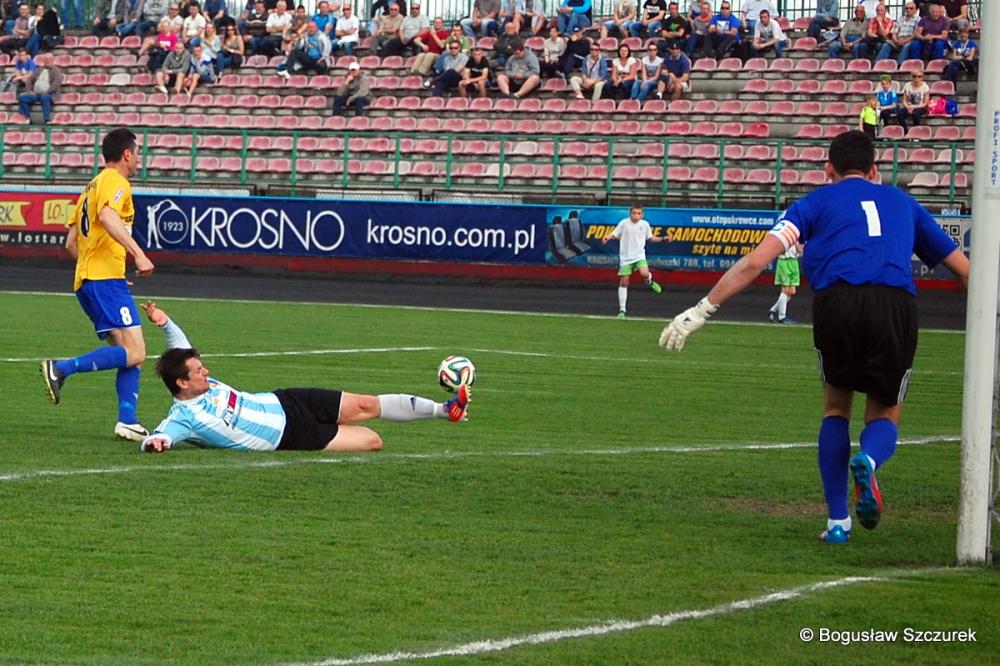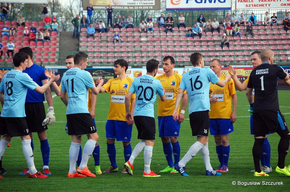 - Karpaty Krosno (biało-niebieskie stroje) zremisowały z Tomasovią 0-0 w meczu 27. kolejki 3 ligi lubelsko-podkarpackiej (fot. Bogusław Szczurek)