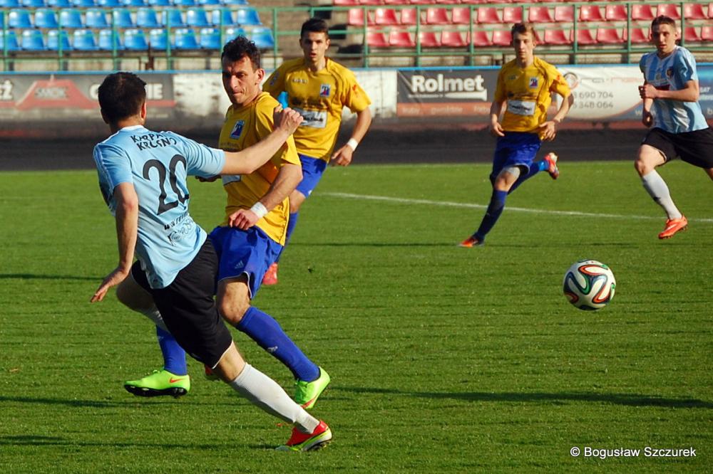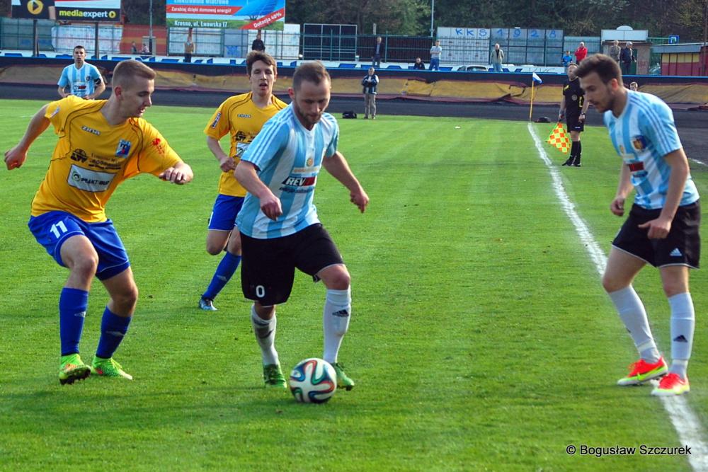 - Karpaty Krosno (biało-niebieskie stroje) zremisowały z Tomasovią 0-0 w meczu 27. kolejki 3 ligi lubelsko-podkarpackiej (fot. Bogusław Szczurek)