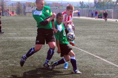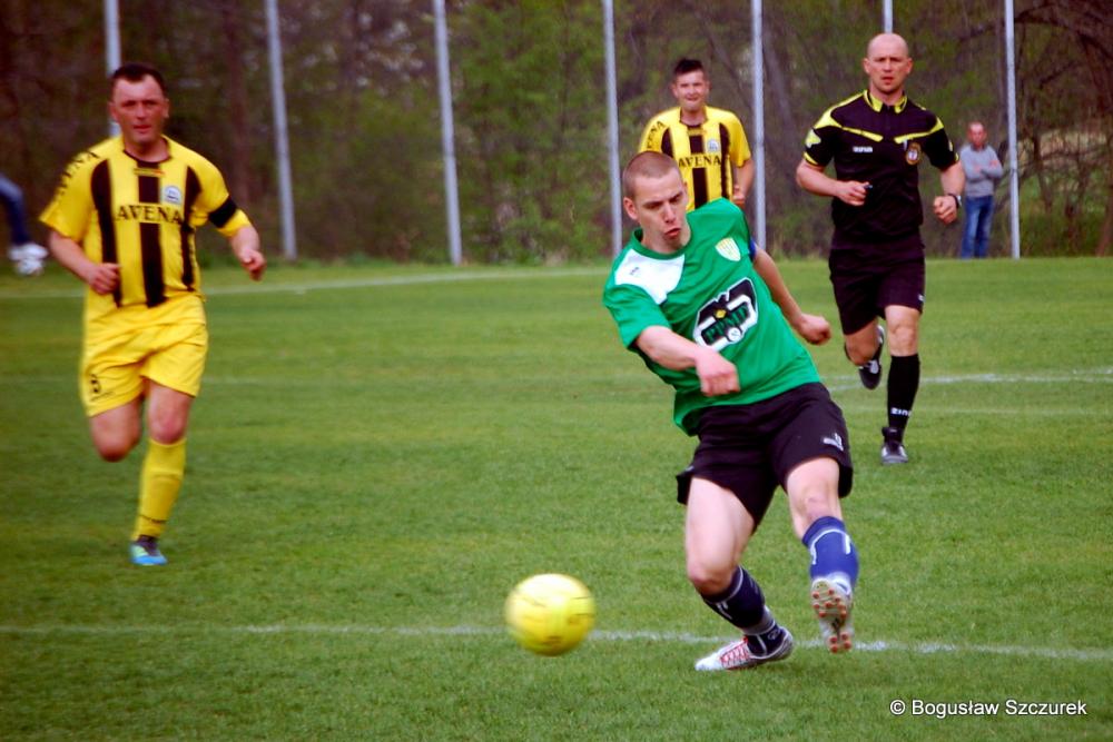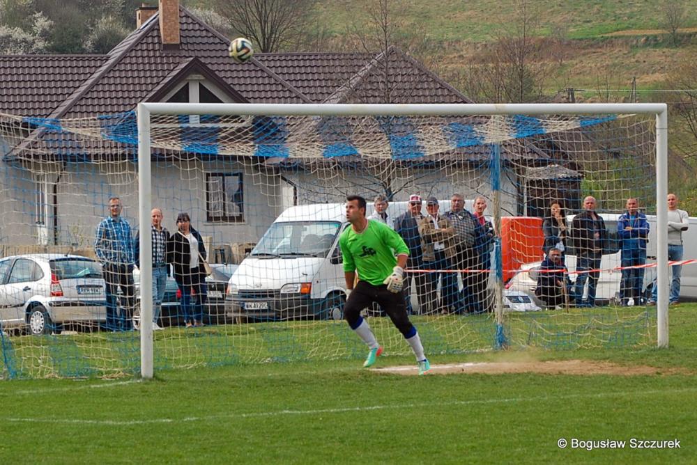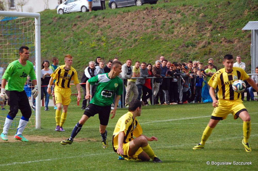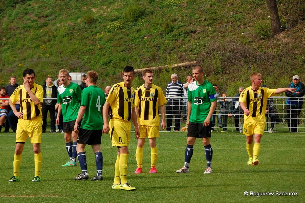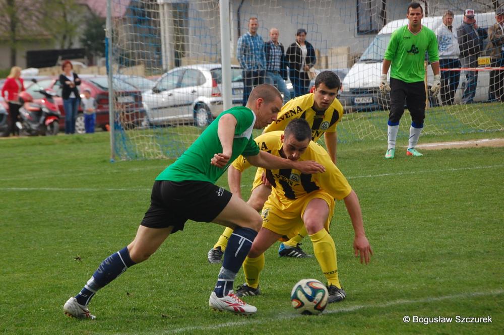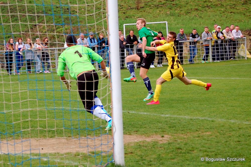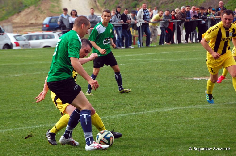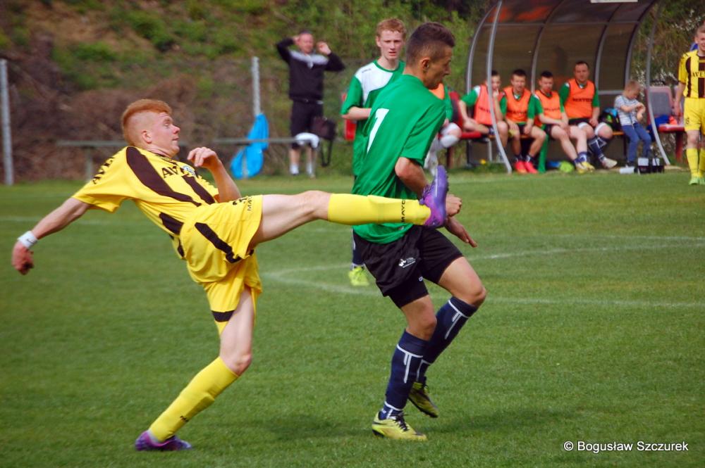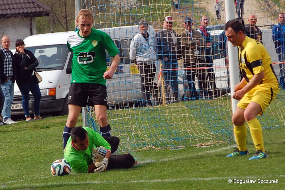 - Piłkarze Orła Faliszówka (żółto-czarne stroje) zremisowali 2-2 z Przełęczą Dukla w meczu 20. kolejki klasy O Krosno (fot. Bogusław Szczurek)