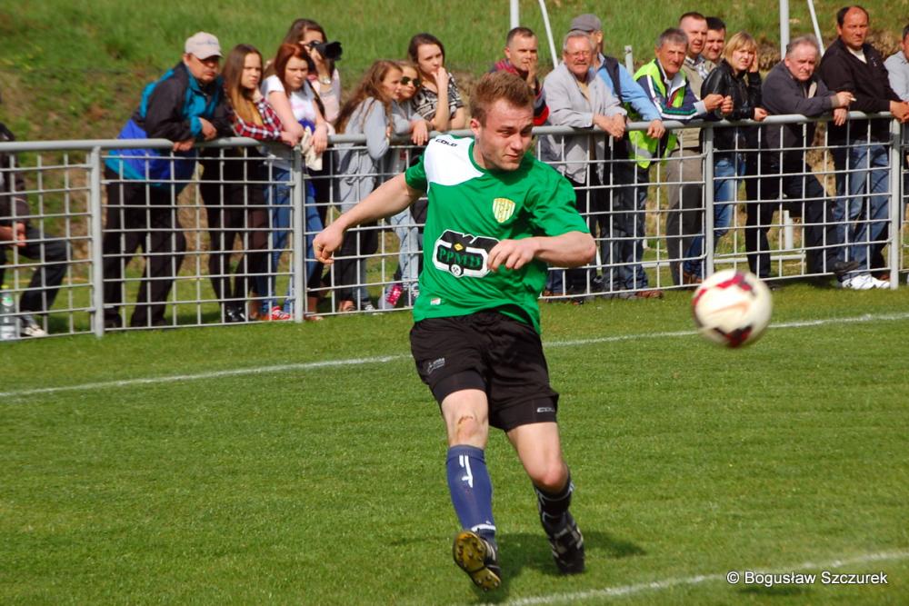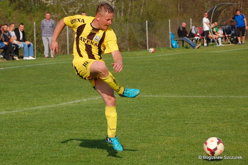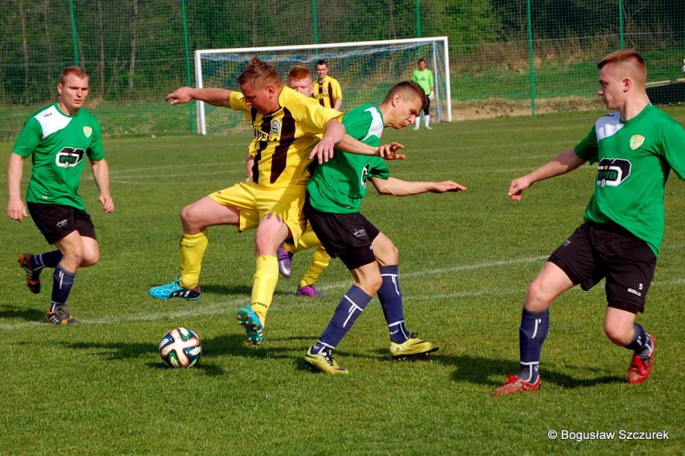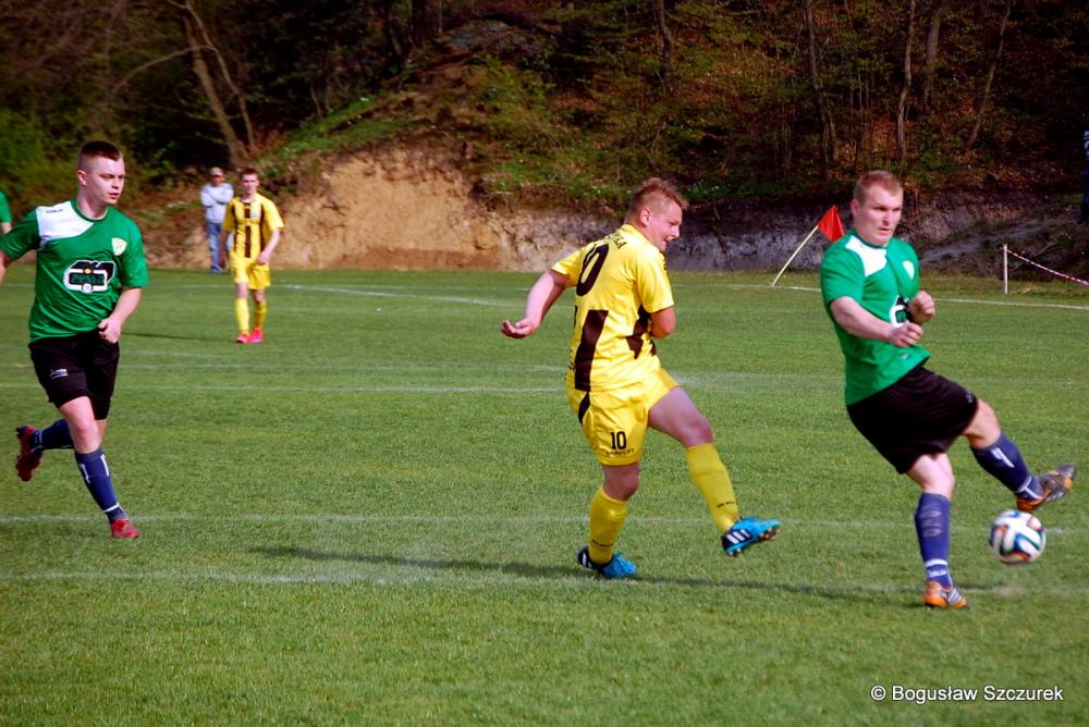 - Piłkarze Orła Faliszówka (żółto-czarne stroje) zremisowali 2-2 z Przełęczą Dukla w meczu 20. kolejki klasy O Krosno (fot. Bogusław Szczurek)