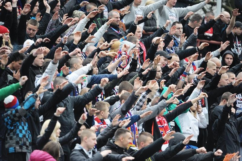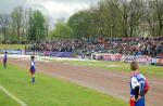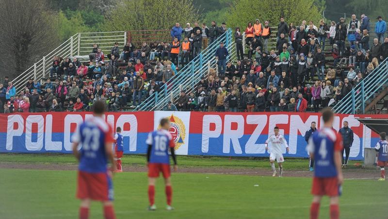 - Piłkarze Polonii Przemyśl (niebiesko-czerwone stroje) ulegli Wiśle Kraków 0-5 w towarzyskim meczu piłkarskich z okazji 105-lecia przemyskiego klubu.