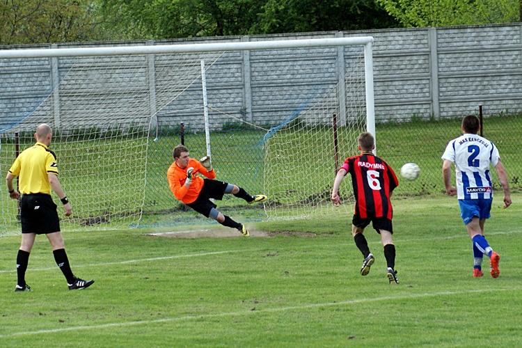 - MKS Radymno (czerwono-czarne stroje) przegrał przed własną publicznością z MKS-em Kańczuga 0-1. Spotkanie zostało rozegrana w ramach rozgrywek o mistrzostwo klasy O Jarosław (fot. Mieczysław Turczyn)