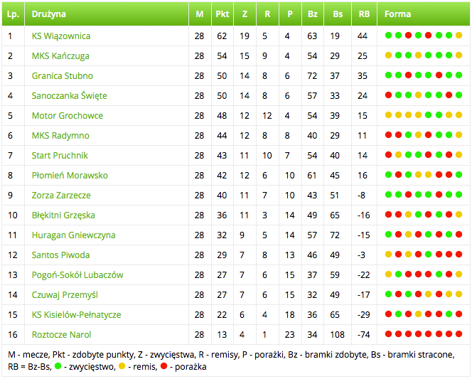Dzięki dzisiejszej wygranej KS Wiązownica ma w tabeli klasy O Jarosław już 8 punktów przewagi nad drugim MKS-em Kańczuga.