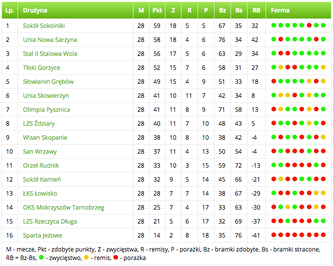 Na dwie kolejki przed końcem w grze o awans są także Unia Nowa Sarzyna (1 pkt strady do Sokoła) i Stal II Stalowa Wola (3 pkt).