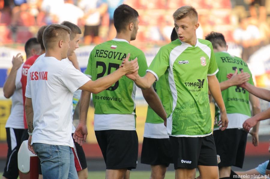 - Resovia (zielone koszulki) wygrała na wyjeździe z Karpatami Krosno w meczu inauguracyjnej kolejki 3 ligi lubelsko-podkarpackiej. Jedynego gola zdobył Przemysław Pyrdek w 10. minucie spotkania (fot. Marcin Pirga)