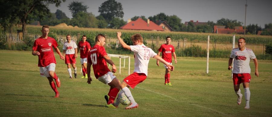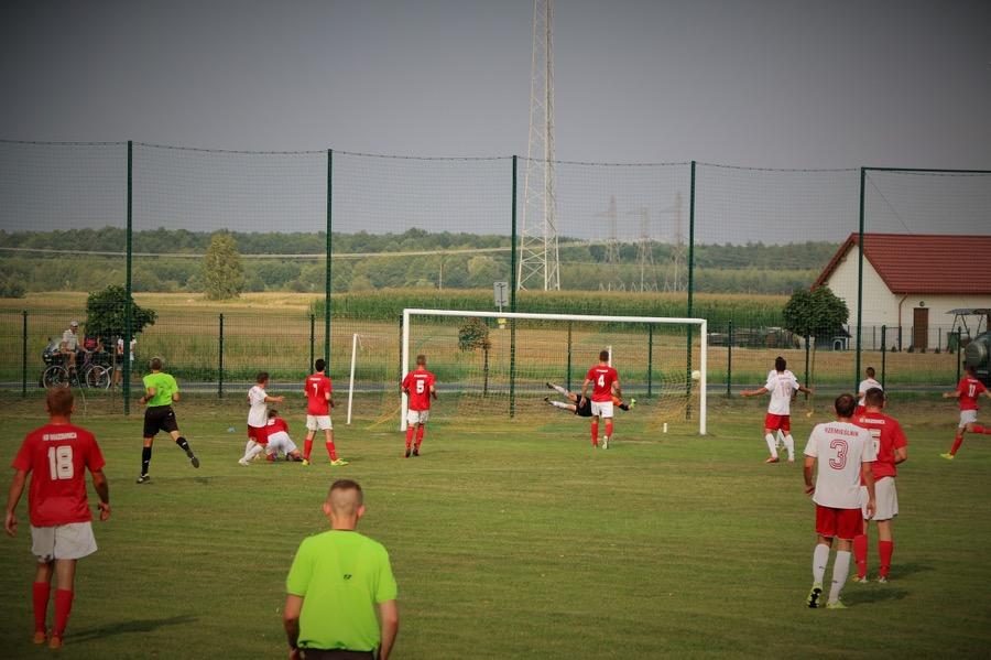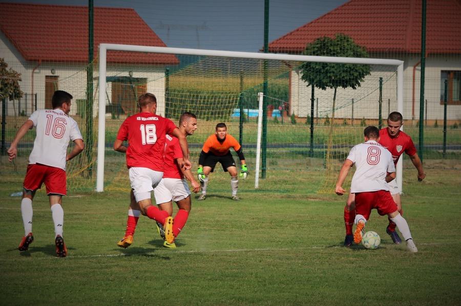 - Piłkarz KS Wiązownica (czerwone koszulki) przegrali przed własną publicznością z Rzemieślnikiem Pilzno. Goście zwyciężyli 3-0 (fot. Natalia Styś)