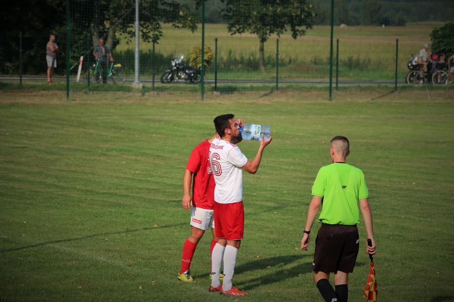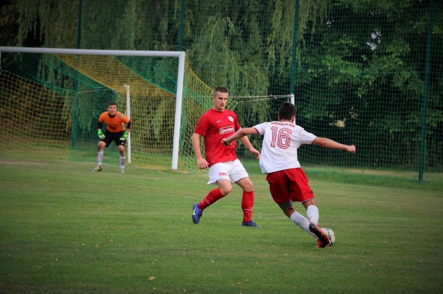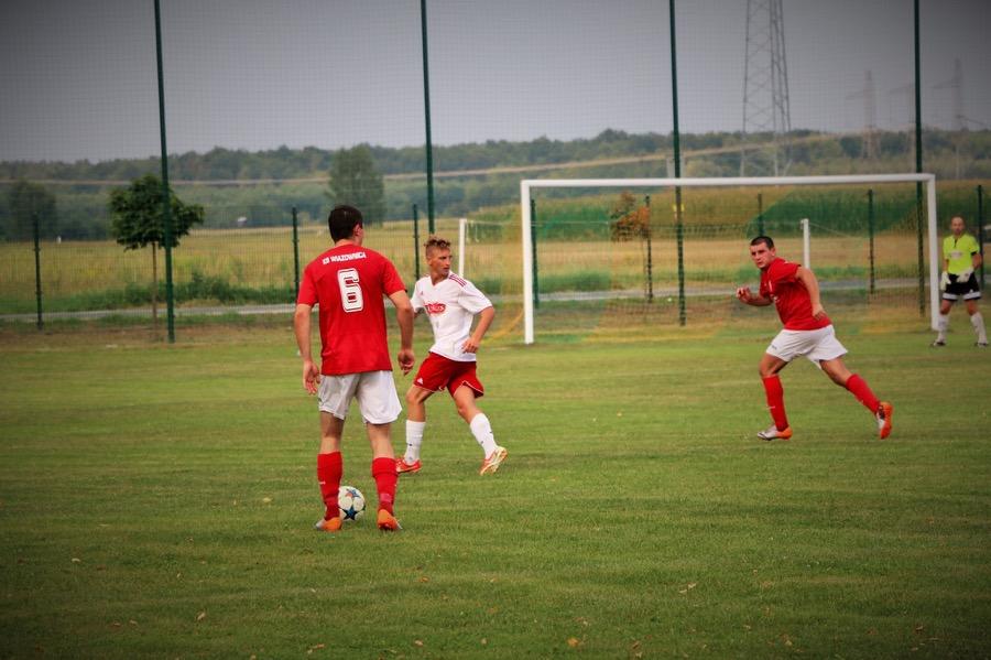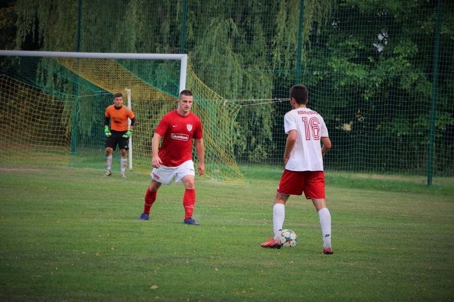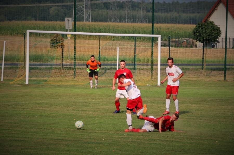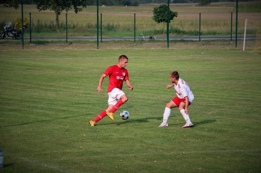 - Piłkarz KS Wiązownica (czerwone koszulki) przegrali przed własną publicznością z Rzemieślnikiem Pilzno. Goście zwyciężyli 3-0 (fot. Natalia Styś)