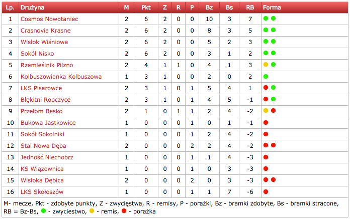 Tabela 4 liga podkarpackiej po sobotnich meczach: