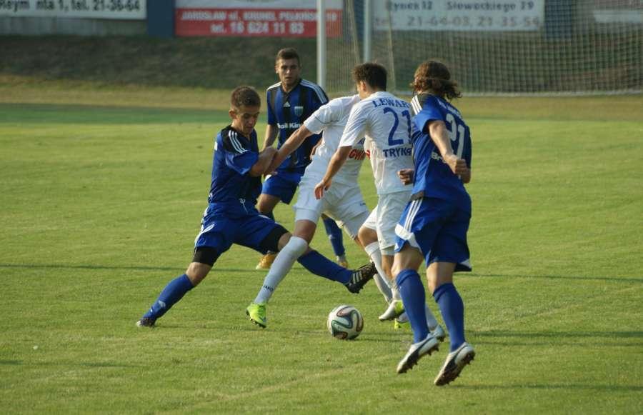 - JKS Jarosław (niebiesko-czarne stroje) zremisował bezbramkowo z Lewartem Lubartów (fot. Klub 100 - JKS Jarosław)