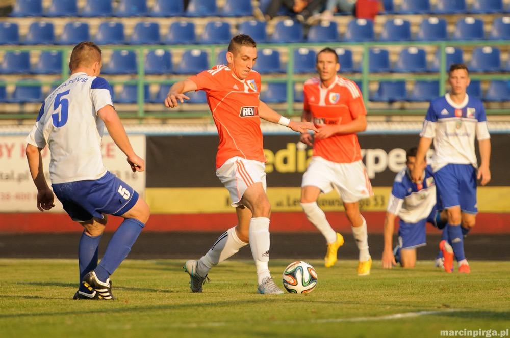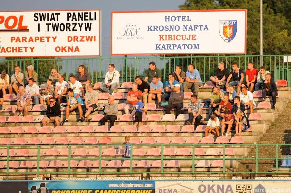 - Karpaty Krosno (pomarańczowe koszulki) wygrały z Tomasovią 3-1 w meczu 4. kolejki. Na ławce trenerskiej gospodarzy zadebiutował Czesław Owczarek (fot. Marcin Pirga)