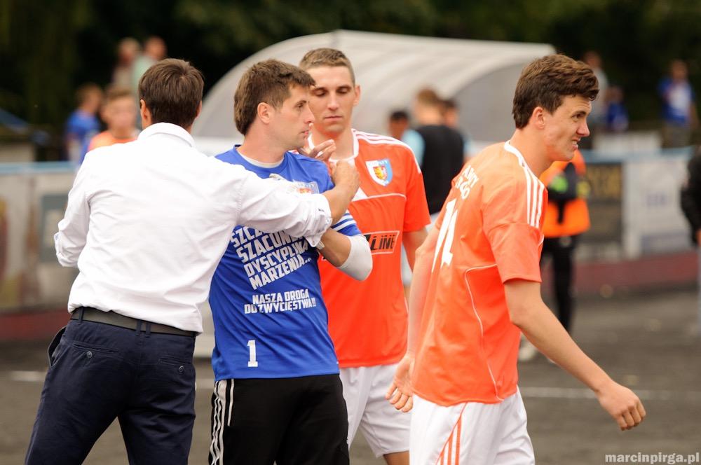 - Karpaty Krosno (pomarańczowe koszulki) wygrały z Tomasovią 3-1 w meczu 4. kolejki. Na ławce trenerskiej gospodarzy zadebiutował Czesław Owczarek (fot. Marcin Pirga)