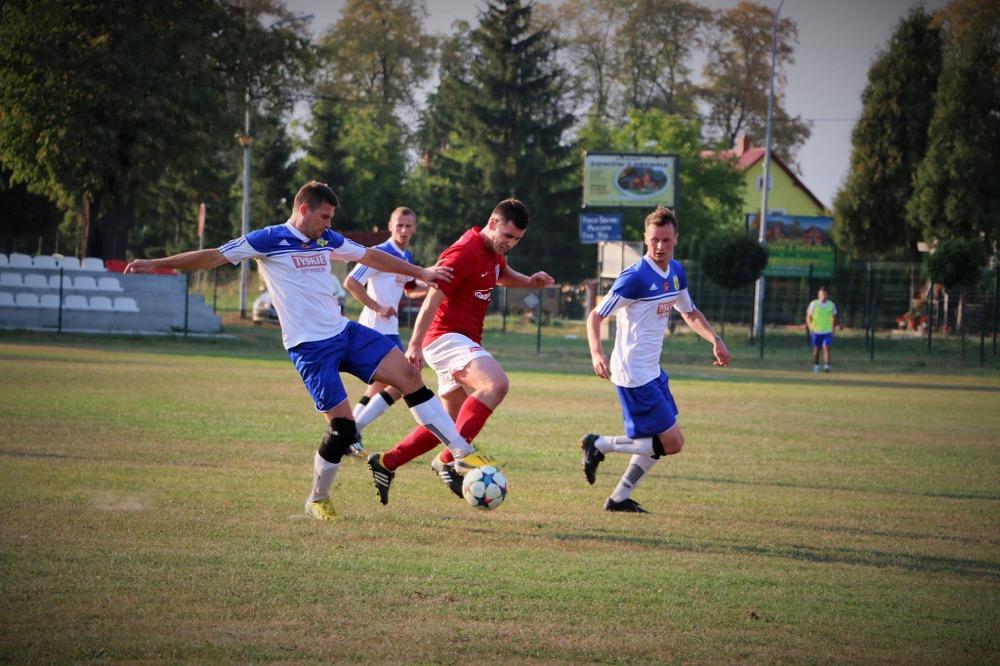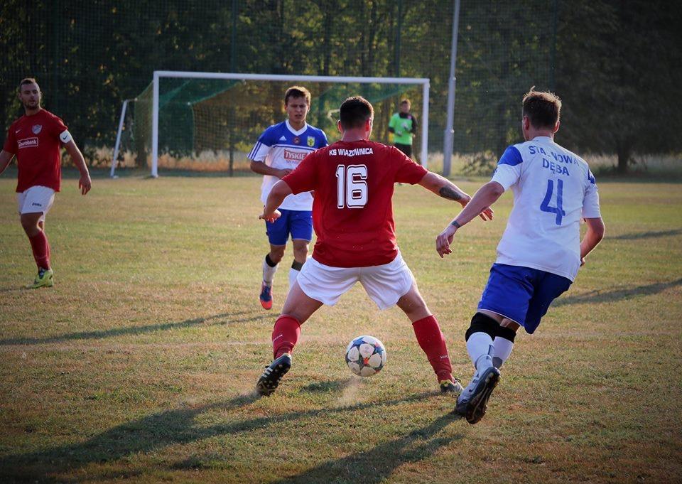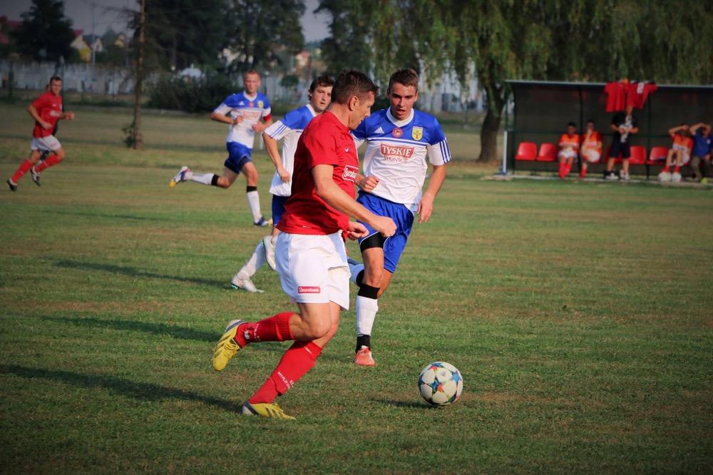 - KS Wiązownica (czerwono-białe stroje) wygrała ze Stalą Nowa Dęba 1-0 w meczu 3. kolejki. Zwycięskiego gola dla gospodarzy zdobył Piotr Misiąg (fot. Natalia Styś)