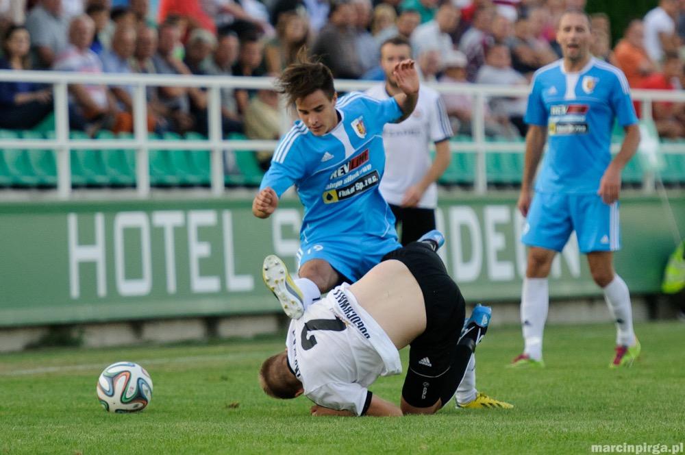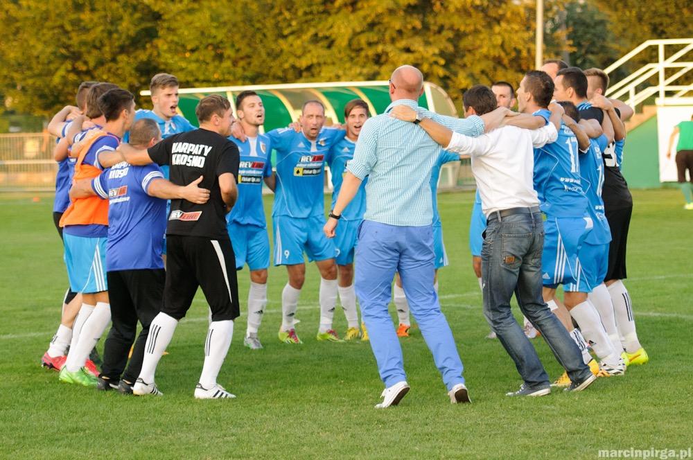 - Karpaty Krosno (niebieskie stroje) wygrały w wyjazdowym pojedynku z Izolatorem Boguchwała 4-3. Spotkanie zostało rozegrane w ramach 5. kolejki rozgrywek 3 ligi lubelsko-podkarpackiej (fot. Marcin Pirga)
