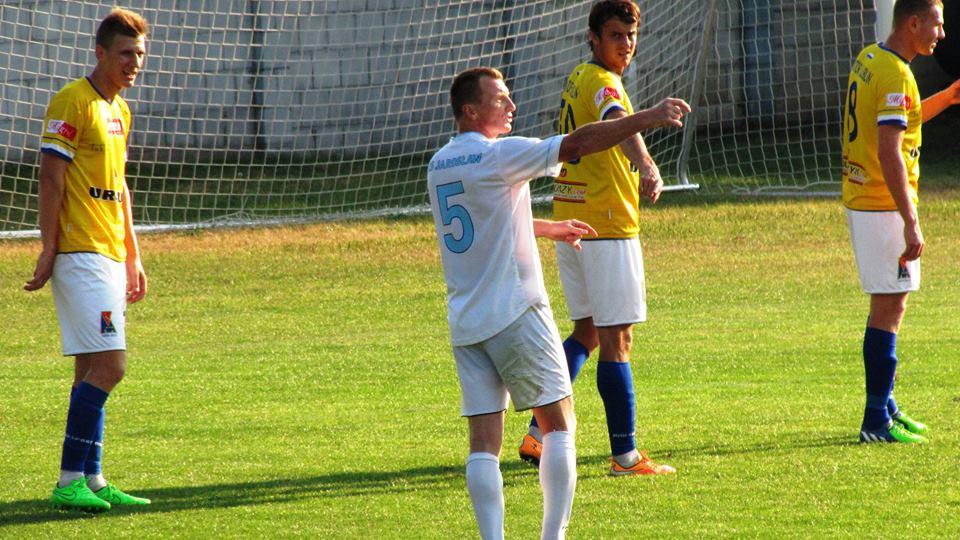 - JKS Jarosław (na biało) przegrał u siebie z Motorem Lublin 1-2 (fot. Klub 100 - JKS Jarosław)