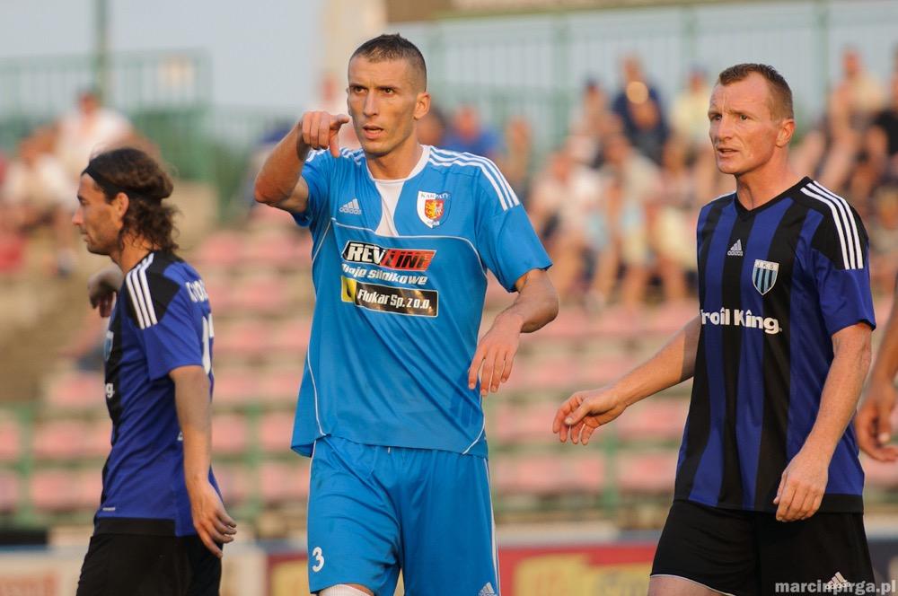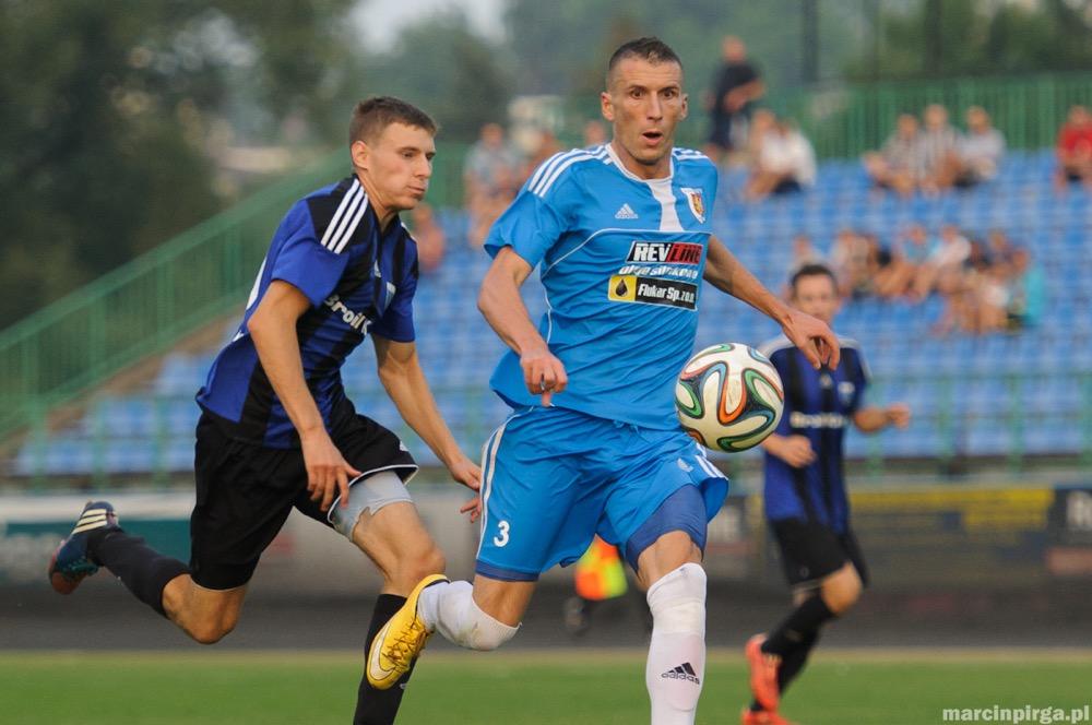 - Karpaty Krosno (jasnoniebieskie stroje) zremisowały przed własną publicznością z JKS-em Jarosław. Spotkanie zakończyło się wynikiem 1-1 (fot. Marcin Pirga)
