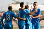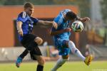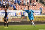 - Karpaty Krosno (jasnoniebieskie stroje) zremisowały przed własną publicznością z JKS-em Jarosław. Spotkanie zakończyło się wynikiem 1-1 (fot. Marcin Pirga)