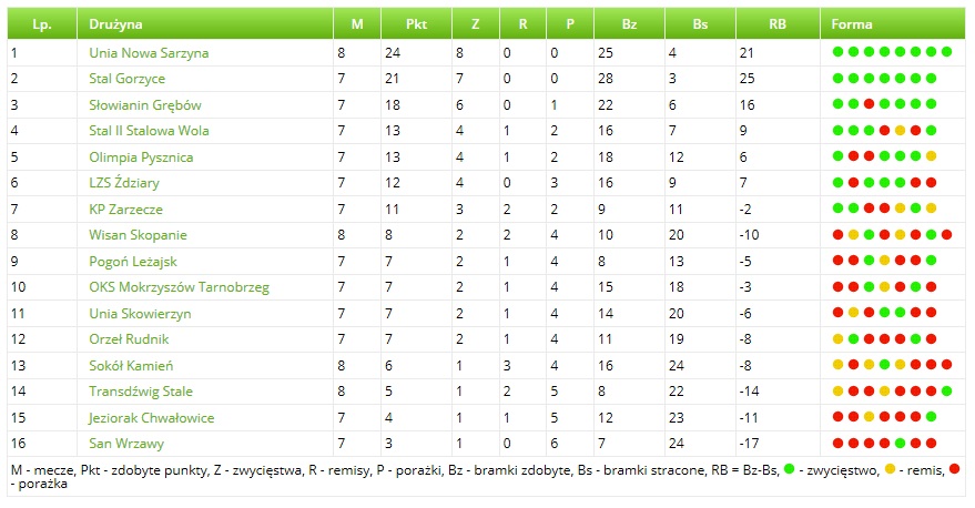 Unia Nowa Sarzyna: Osipa - M. Błajda (86. Bielak), Kulec, Klocek, Pieróg, Grześkiewicz (75. Fil), Florek, K. Błajda (46. Kusy), Bigas, Sobota (46. Filip), Gnatek.
